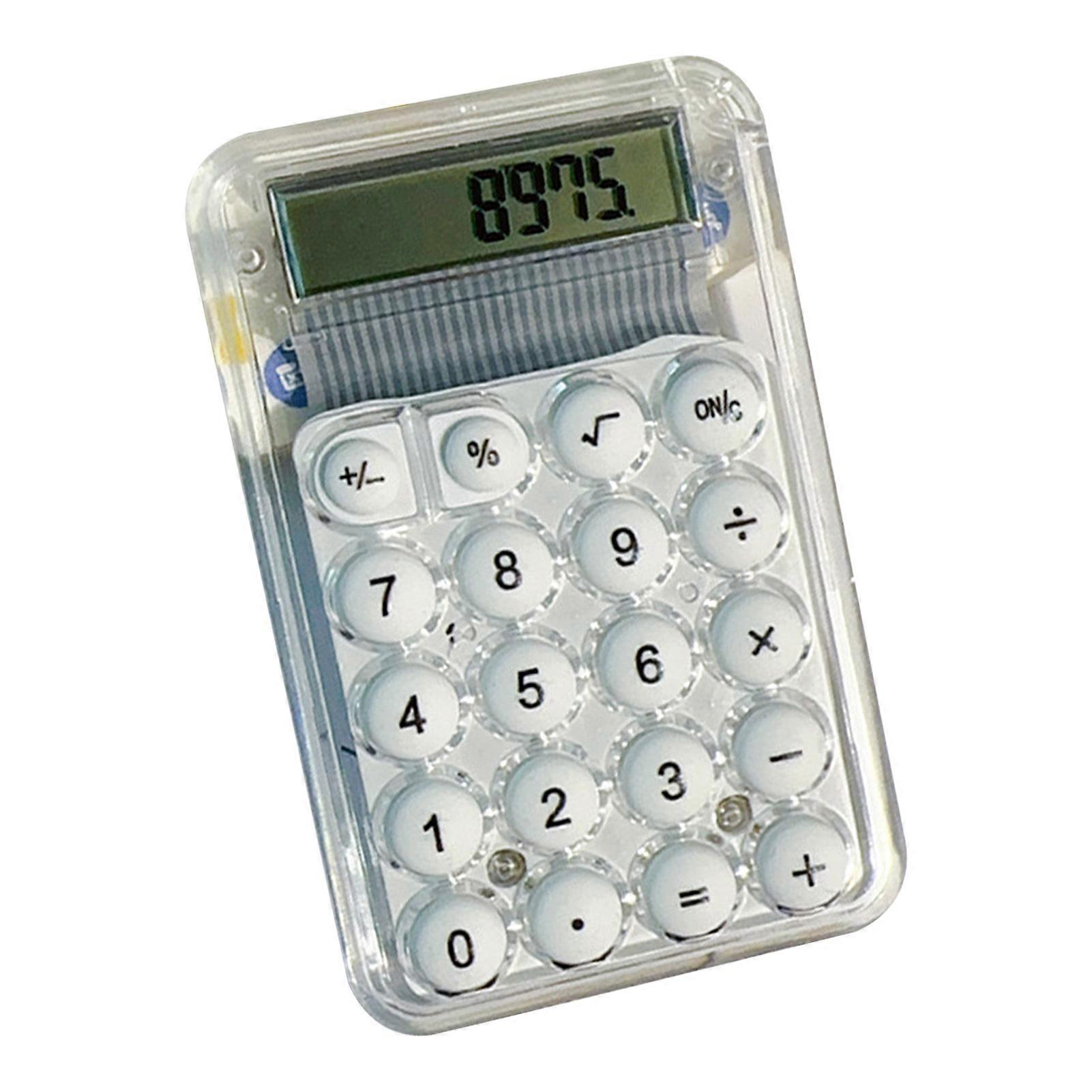 Cute Calculator Soft Big Button Digital Display Silent Portable 8 Digit Mini Calculator for Girls Boys Students White