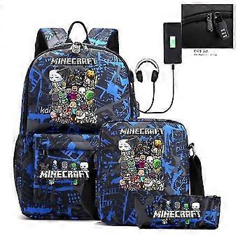 Spel med ryggsäck Minecraft 3st Tonåring Skolväska För Flickor Pojkar Kvinnor Män Mellanstudent Skolväska Stor bärbar dator Mochilas