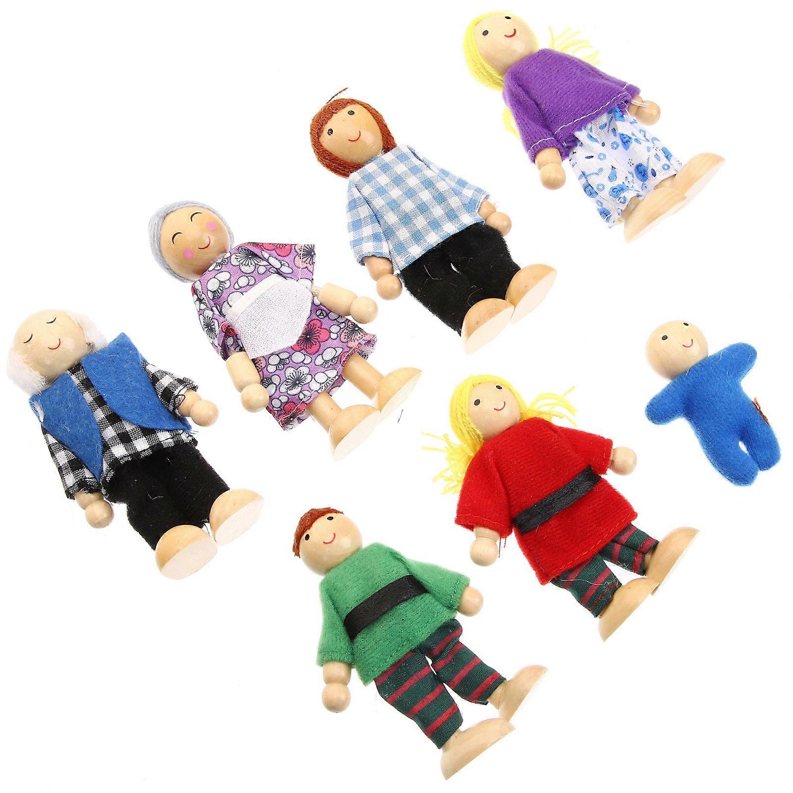 Playing House Dolls Wooden Family Role Puppets Set for Kids 28Pcs