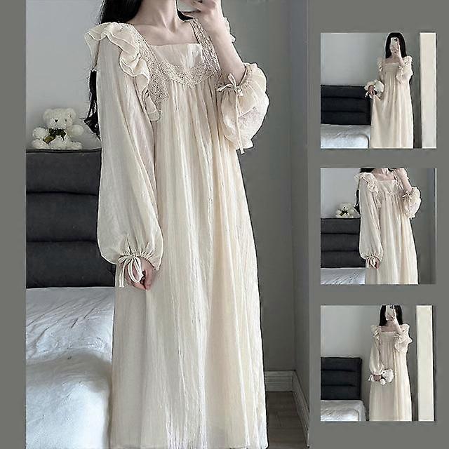 Lace Nightgown Sleepwear Women Korean Ruffles Night Dress Spring One Piece Pajamas Long Sleeve Square Collar Home Wear