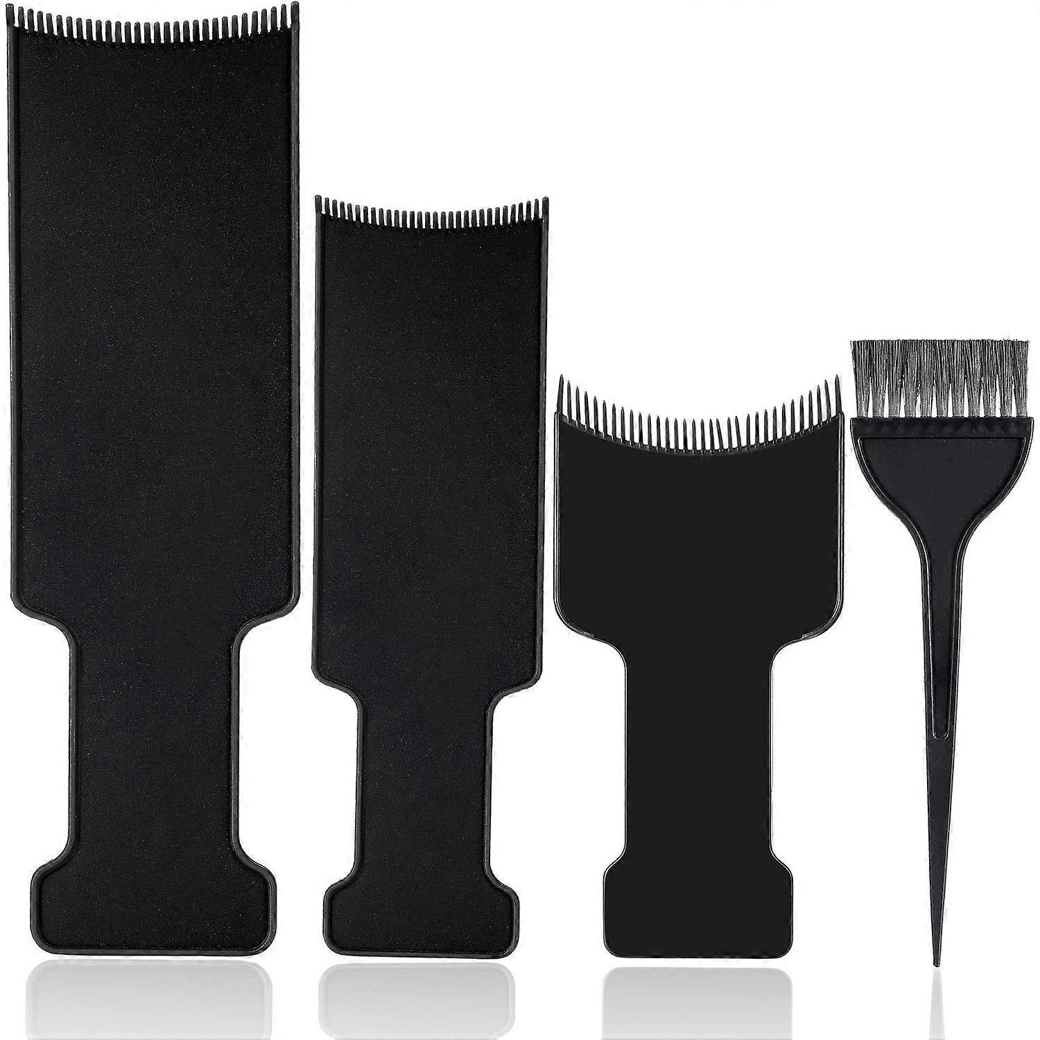 4 pcs Highlighter Board with Teeth Hair Color Board Highlighter Brush for Hair Color Board What you'll get: 3 highlight boards and 1 hairbrush in the package, perfect for salon or at-home use Dimensions: Gloss board available in 3 sizes, Large: 35 x 8.2 cm/ 13.8 x 3.15 inches, Middle: 26.5 x 8.2 cm/ 10.25 x 3.15 inches, Small: 19 x 9.5 cm/8.3 x 2.4 inches; Color Brush Approx. 21 x 6 cm / 8.3 cm x 2.4 inches EASY TO USE: Hair Color Kit is suitable for home and salon, the bristle brush helps to color better, easy and convenient to use, make you look beautiful. EASY TO USE: Simply pull the hair you want to color onto the plate for a firm foundation, straighten a section of hair for coloring or bleaching; sturdy highlighter plate and bristles help with coverage, won't build up hair, and easy to clean ,reusable Application: Hair coloring kit is suitable for home and salon, the bristle brush helps to dye better, simple and convenient, giving you a beautiful look