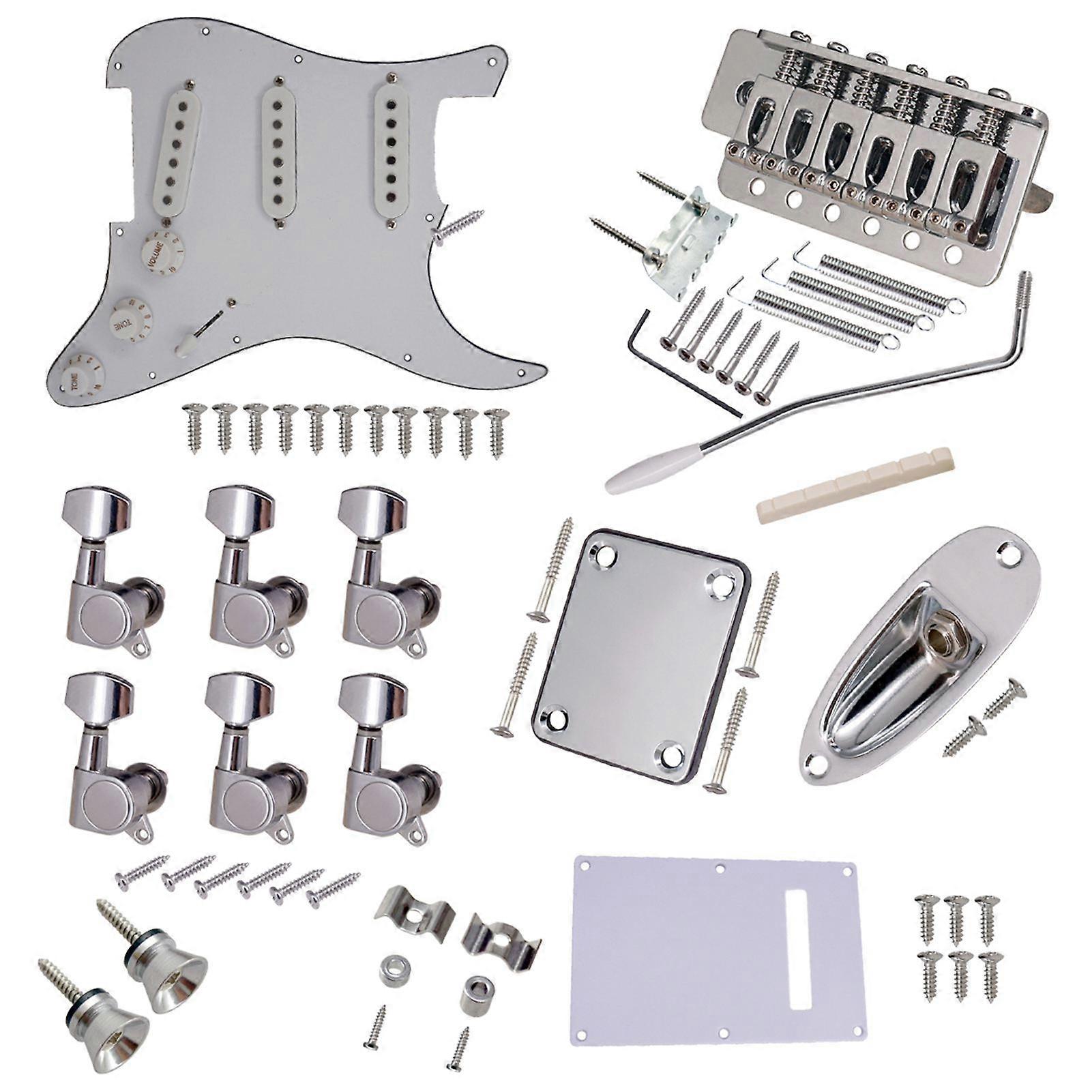 ST Style Electric Guitar Full Set DIY Accessory Kit Including Prewired Pickguard Bridge SSS Pickups and Other Accessories Silver