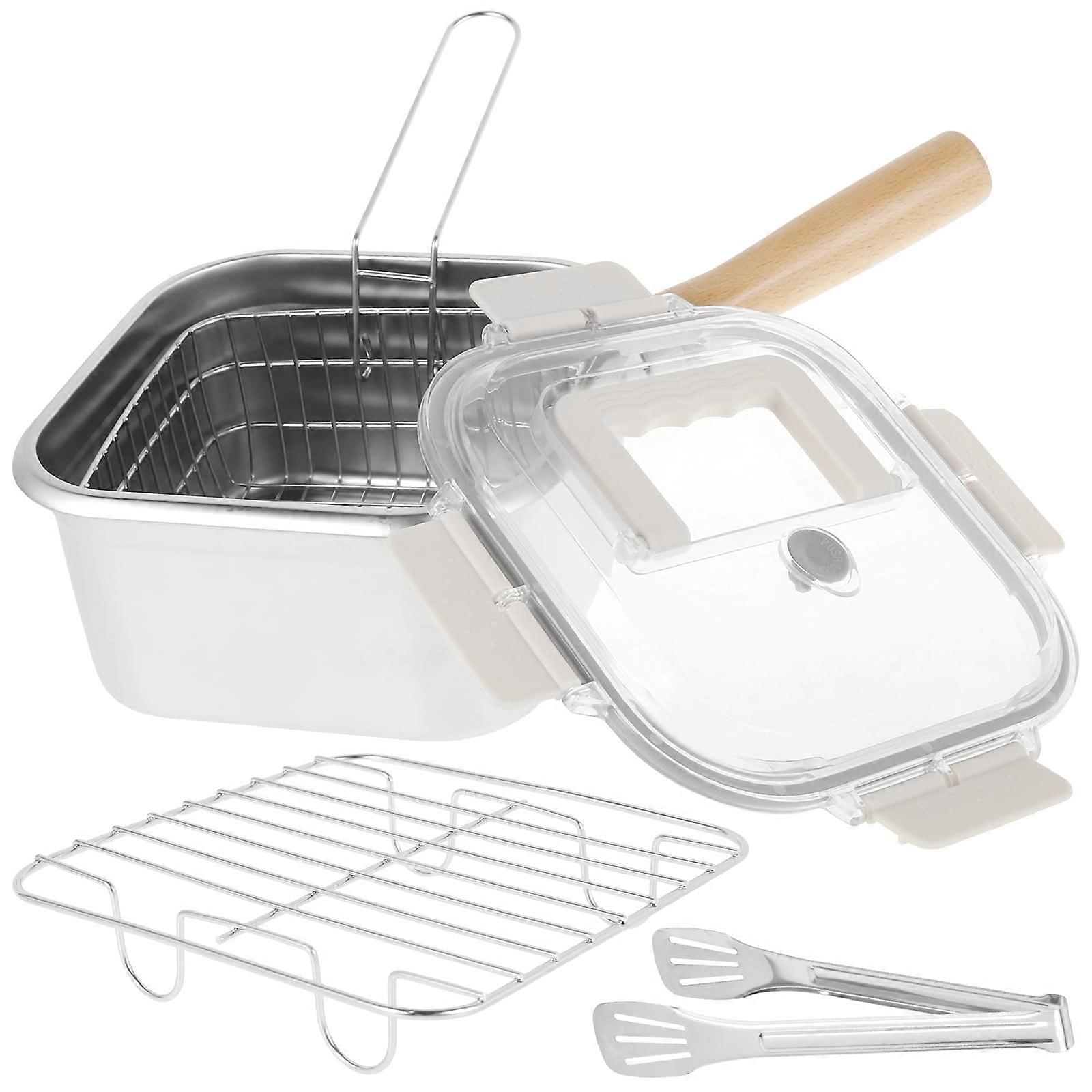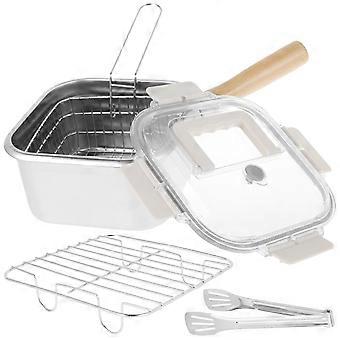 Stainless Steel Deep Fryer Pot with Basket, Handle & Lid - Portable Square Multifunctional Pan for Frying Fish, Chicken, Fries