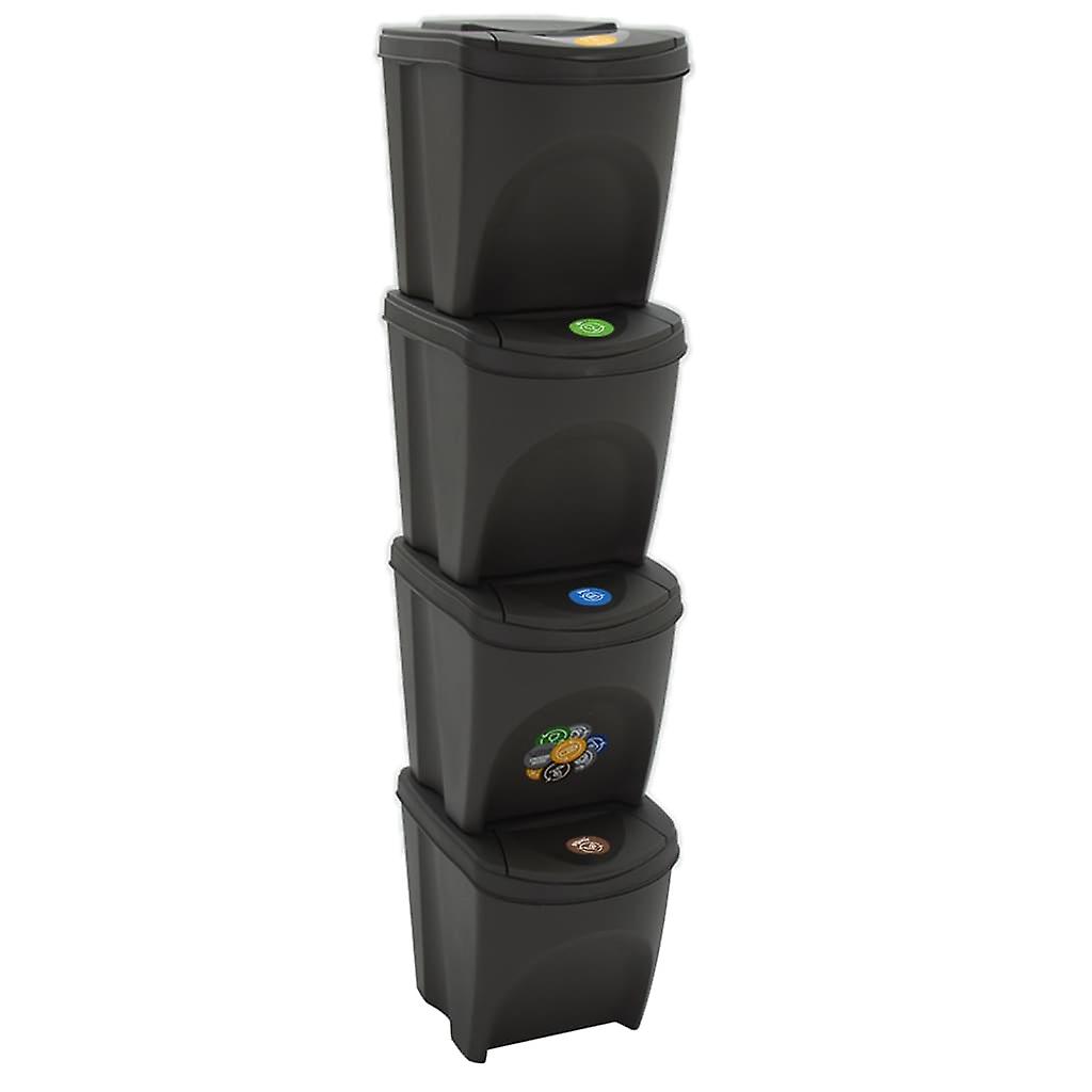 Diese Abfalleimer bietet eine praktische, hygienische und eine wunderbare, saubere Lösung, um Müll in den eigenen vier Wände oder im Büro zu entsorgen. Praktisches Material: Der Mülleimer ist aus Polypropylen gefertigt, was ihn robust und leicht macht.Stapelbar: Die Abfalleimer sind stapelbar, um Platz zu sparen.Abnehmbarer Deckel: Der Deckel kann abgenommen werden, um eine einfache und schnelle Reinigung zu ermöglichen.Praktisches Etikett: Dank der Etiketten lässt sich der Abfall viel bequemer sortieren. Farbe: GrauMaterial: PolypropylenAbmessungen: je 39,2 x 29,3 x 33,5 cm (B x T x H)Gesamtes Fassungsvermögen: 100 L (25 L x 4)Mit Etiketten zur Abfalltrennung auf jedem Behälter (Glas, Papier, Kunststoff, organisch, andere)Lieferung umfasst:4 x Mülleimer
