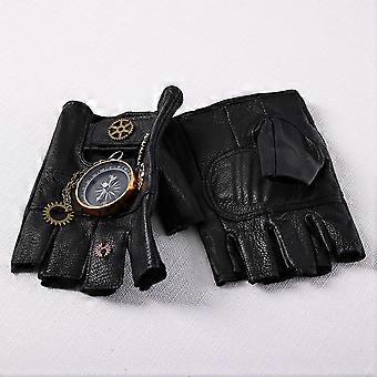 Steampunk PU Leather Fingerless Compass Gloves Men Women Fashion Hip Hop Punk Gloves Half Finger Gloves