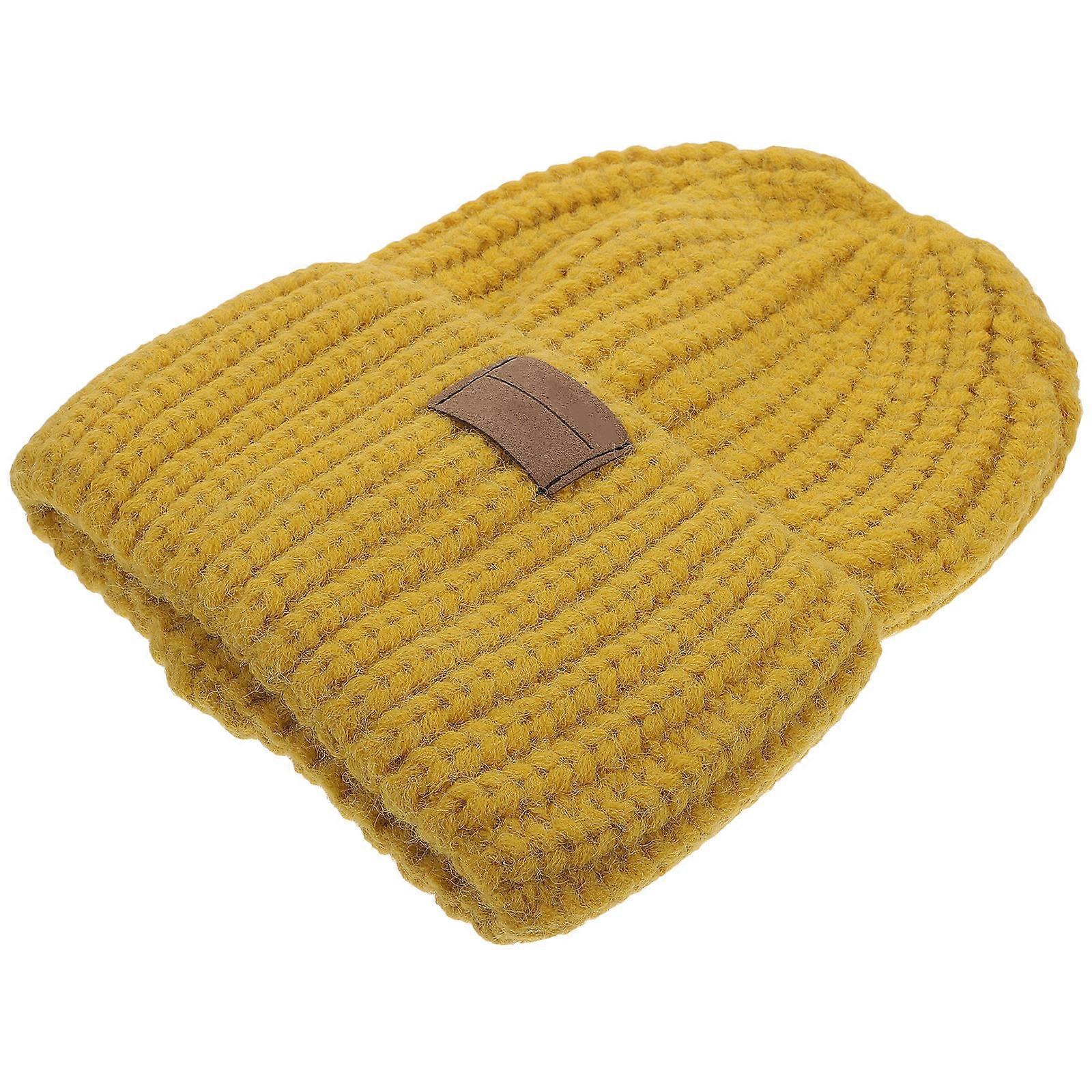 Stickad mössa vindtät 1 st gul för vinterbruk utomhus