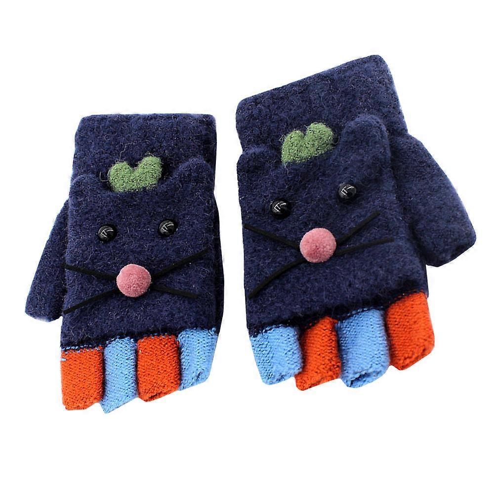 Knit Gloves for Girls Kids Warm Gloves Outdoor Cycling Winter Wear Plush Lining 1 Pair