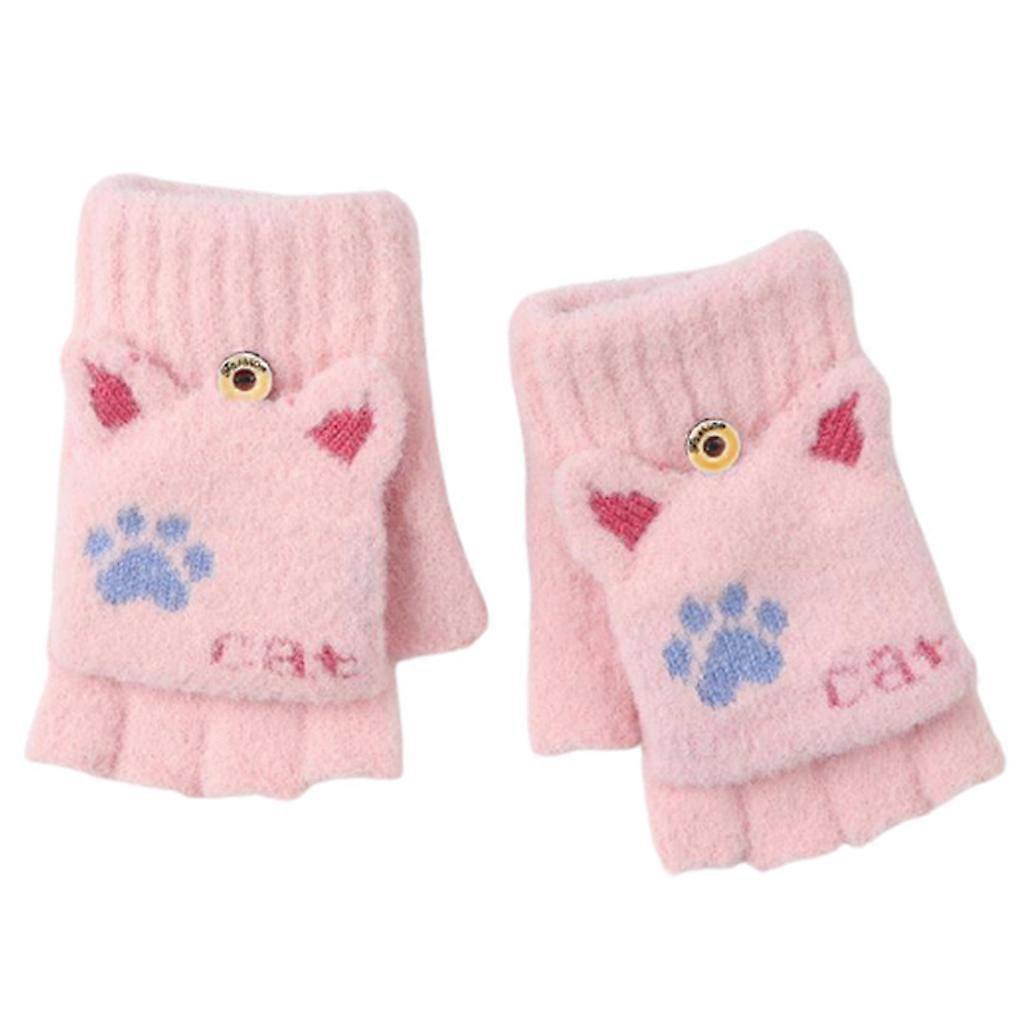 Knitted Gloves Cartoon for Cat Gloves Fingerless Fluffy Kids Mitten with Flip To