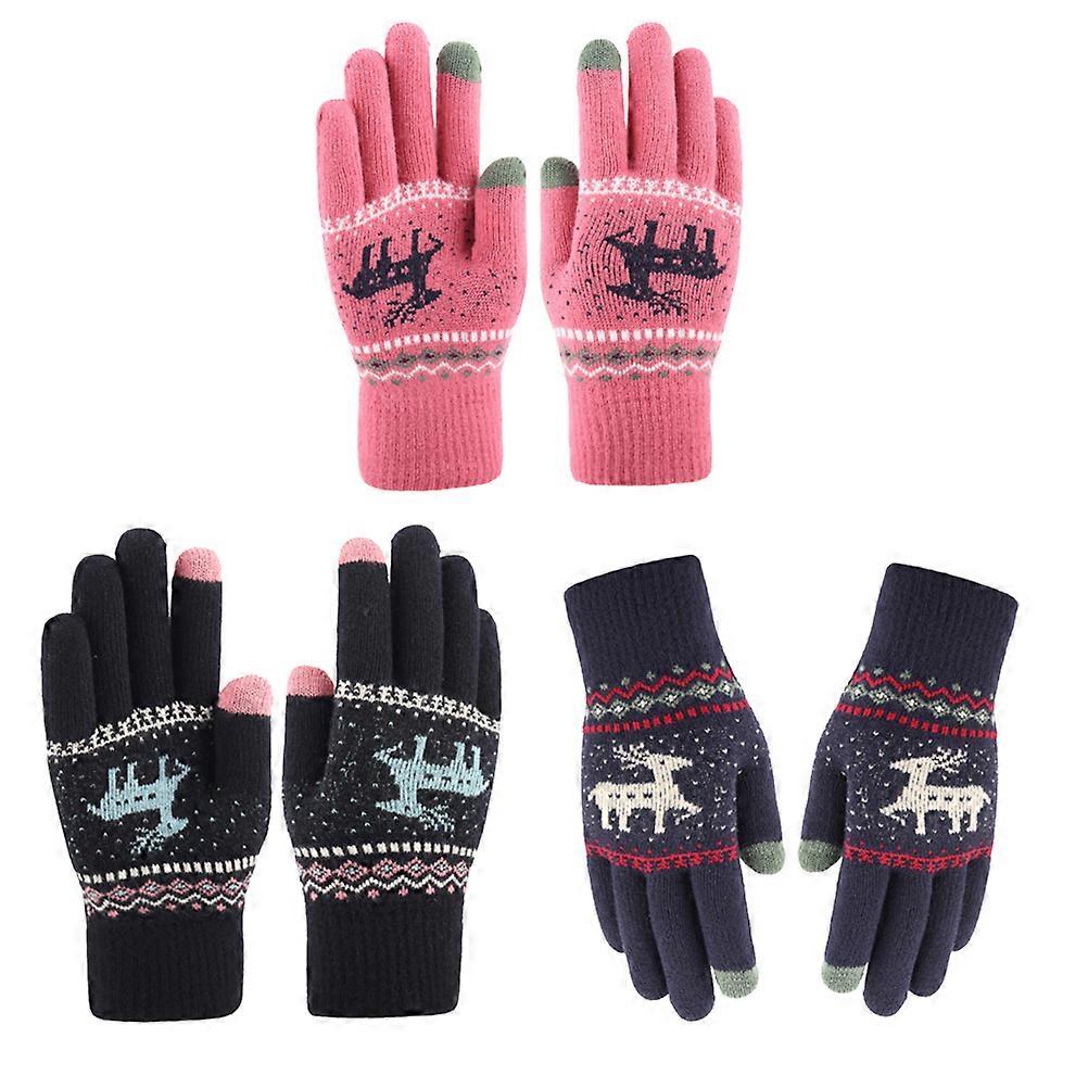 Knit Gloves Thermal Touchscreen Compatible Women Gloves Cold Weather Christmas Theme 3Pairs