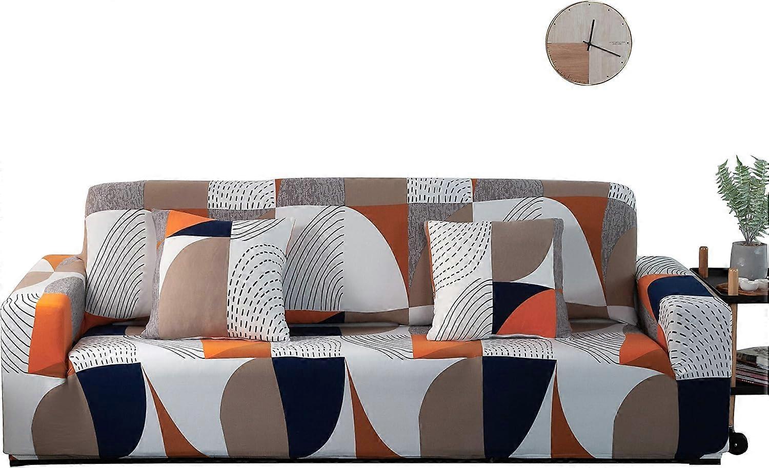 Stretch Sofa Cover 1/2/3/4 Seater Printed Sofa Slipcover Non-Slip Couch Covers Protector (Colorful Geometric Pattern Sofa Cover 2 Seater:141-180cm)