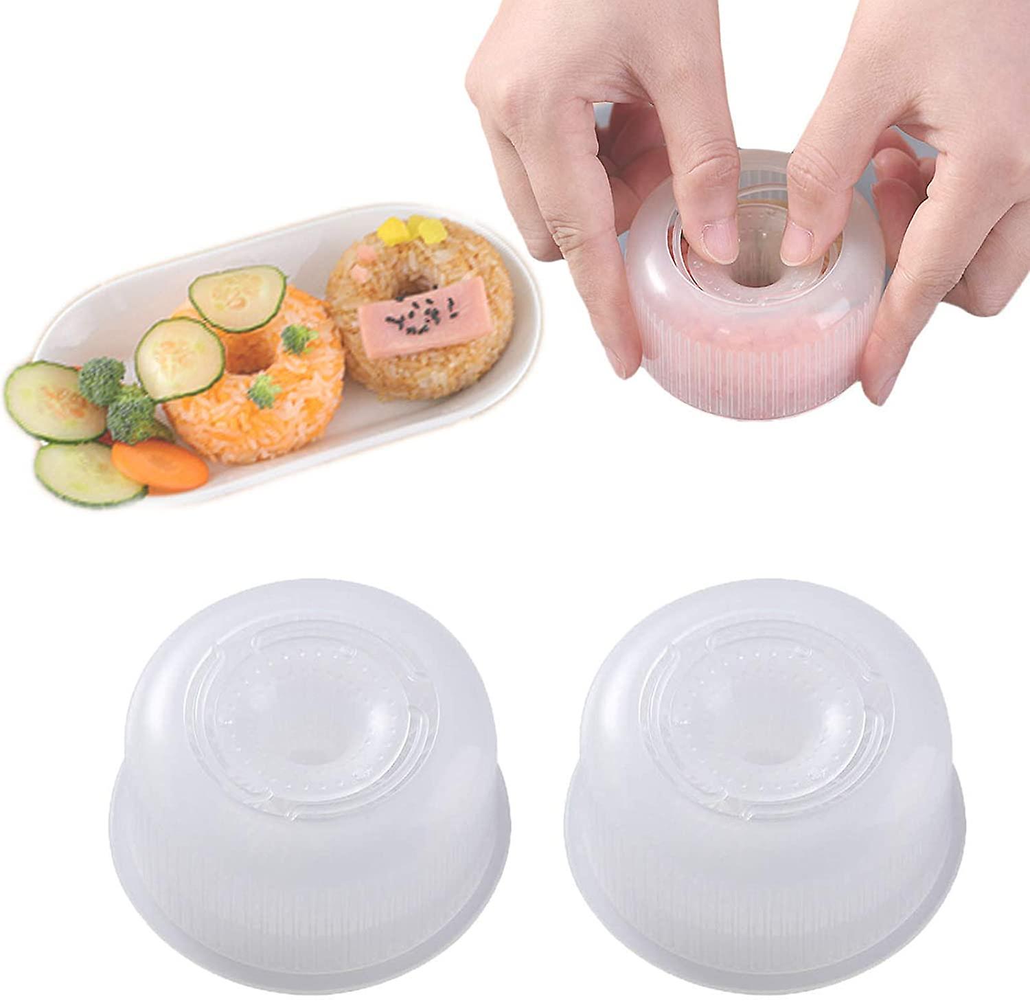 Sushi Maker Onigiri Mold, Non-Stick Donut Maker Rice Ball Mold, 2 Pcs Silicone PP Rice Molds Tool Set