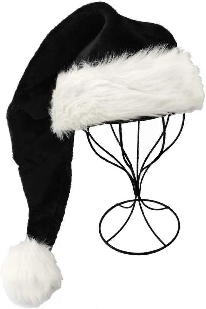 Black Santa Hat for Adults, Black & White Deluxe Christmas Party Decoration Hat