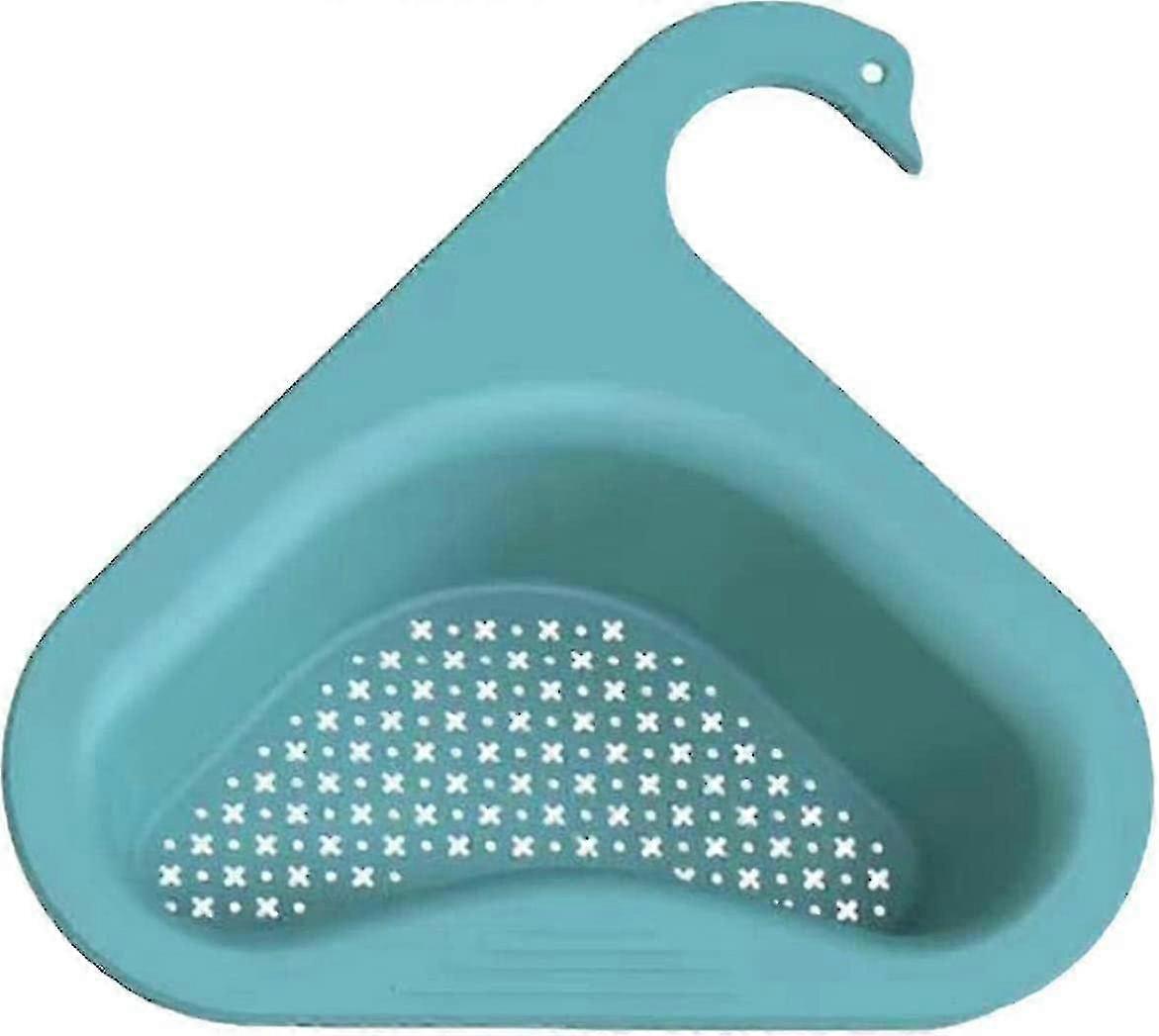 Swan Drain Rack & Strainer Basket for Kitchen Sink - Corner Sink Drain Stopper, Filter & Sponge Holder Storage in Blue