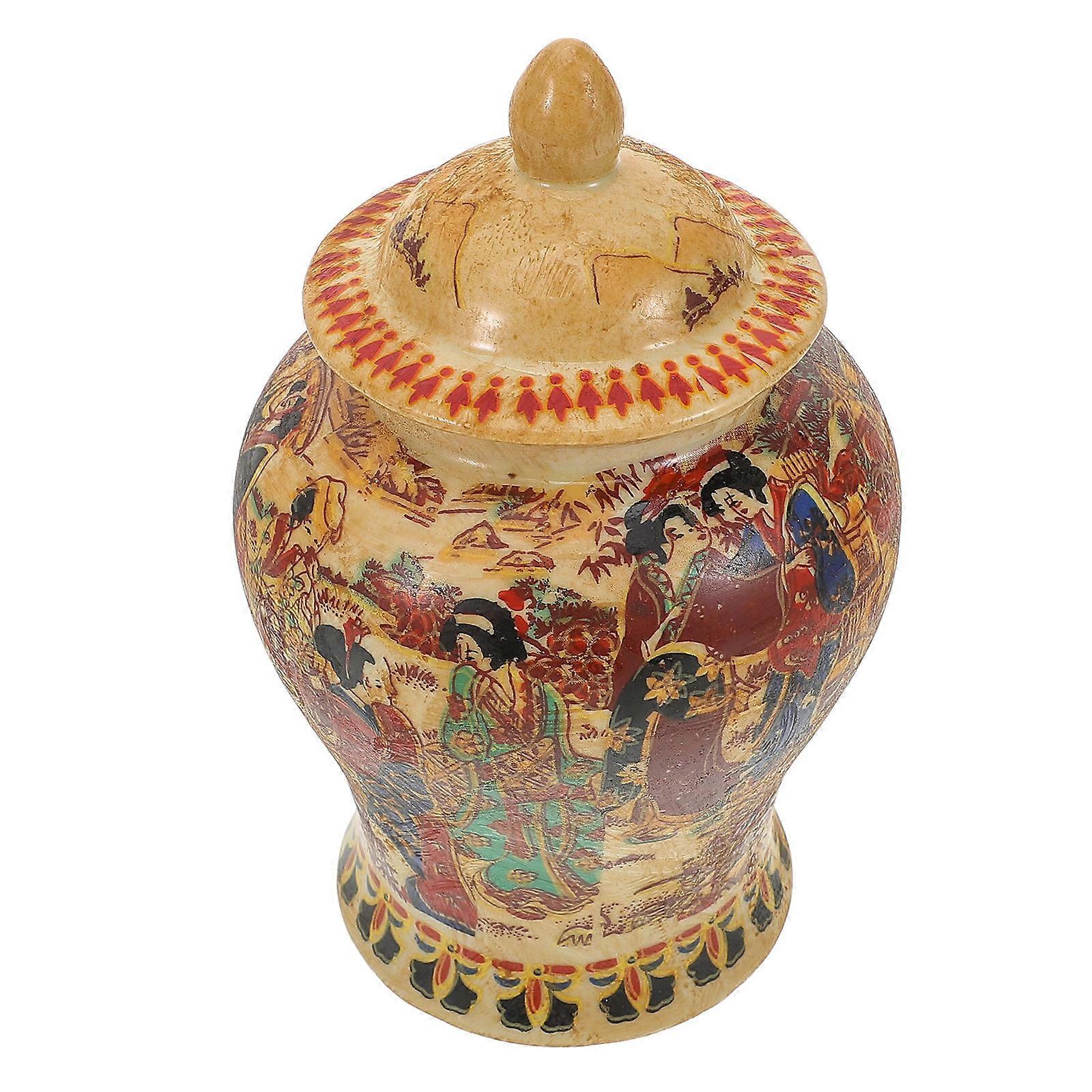 Tea Container Jar Ceramic Airtight Container Collectors Round Lid 6.7×3.7×3.7in 1Pcs