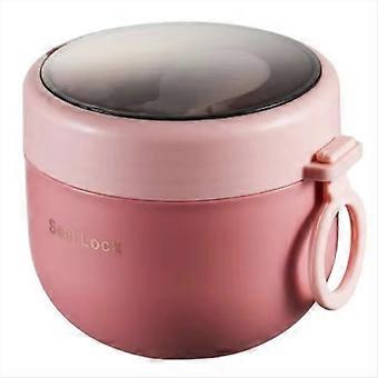 Rostfritt stål vakuum soppkopp - bärbar matlåda med sked, mikrovågssäker, söt design rosa