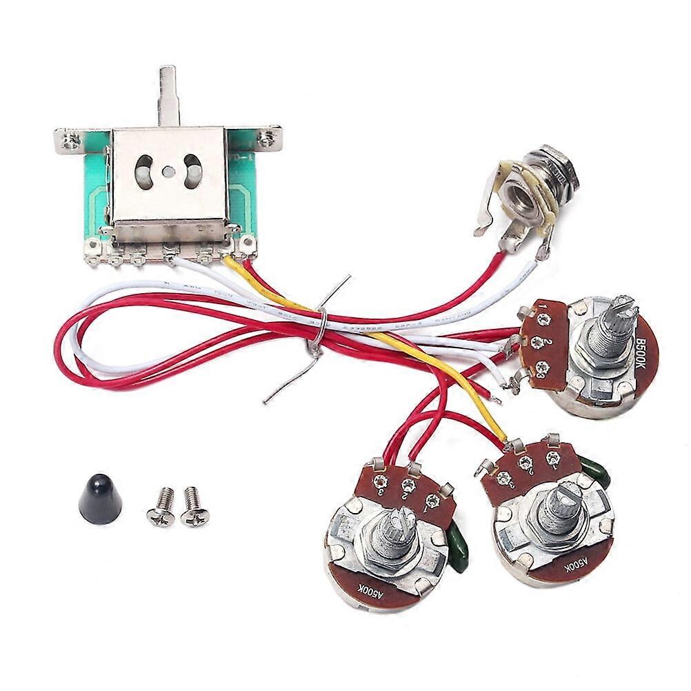 TOYMYTOY 1 Set Electric Guitar Wiring Harness Prewired Kit 5 Way Toggle Switch 1 Volume 2 Tone Pot Jack 500K 2T1V GU101