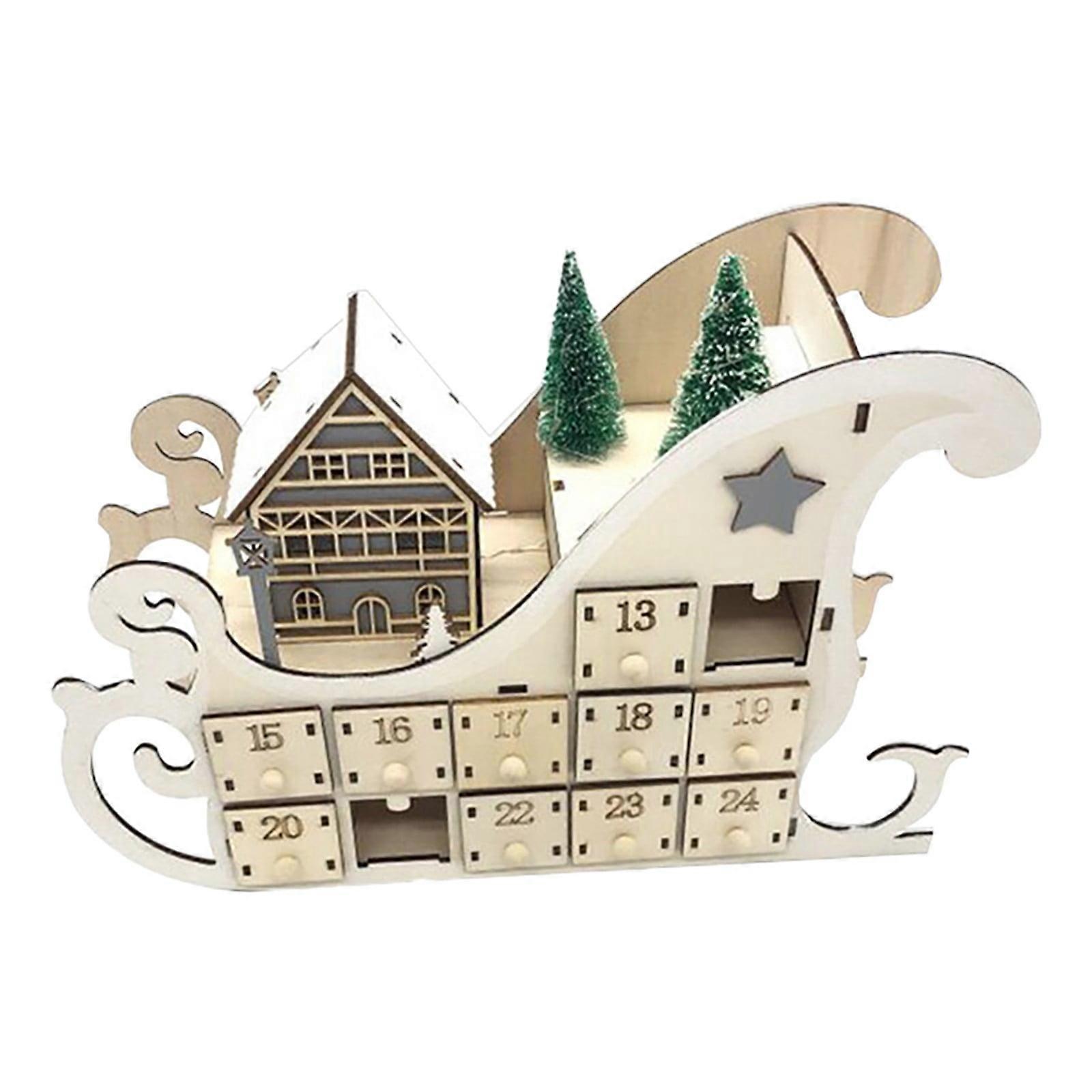 Wooden 24 Countdown Christmas Calendar, Home Sleigh Calendar, Wooden Christmas Decoration, Ornaments And Crafts Mini Timer