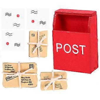 Wooden Dollhouse Mailbox with Miniature Mail Sack and Postcard Ornaments for Doll House Decoration, Miniature Home Decor Enhancing Artistic Atmosphere