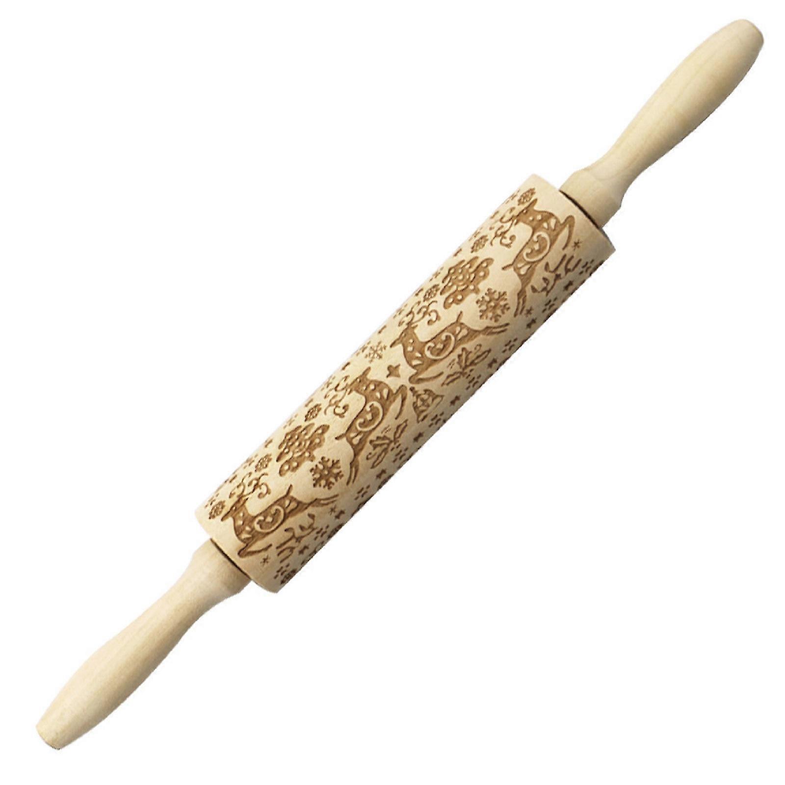Wooden Rolling Pin Christmas Printed Wooden Carved Embossed Cookie Stick Household AA