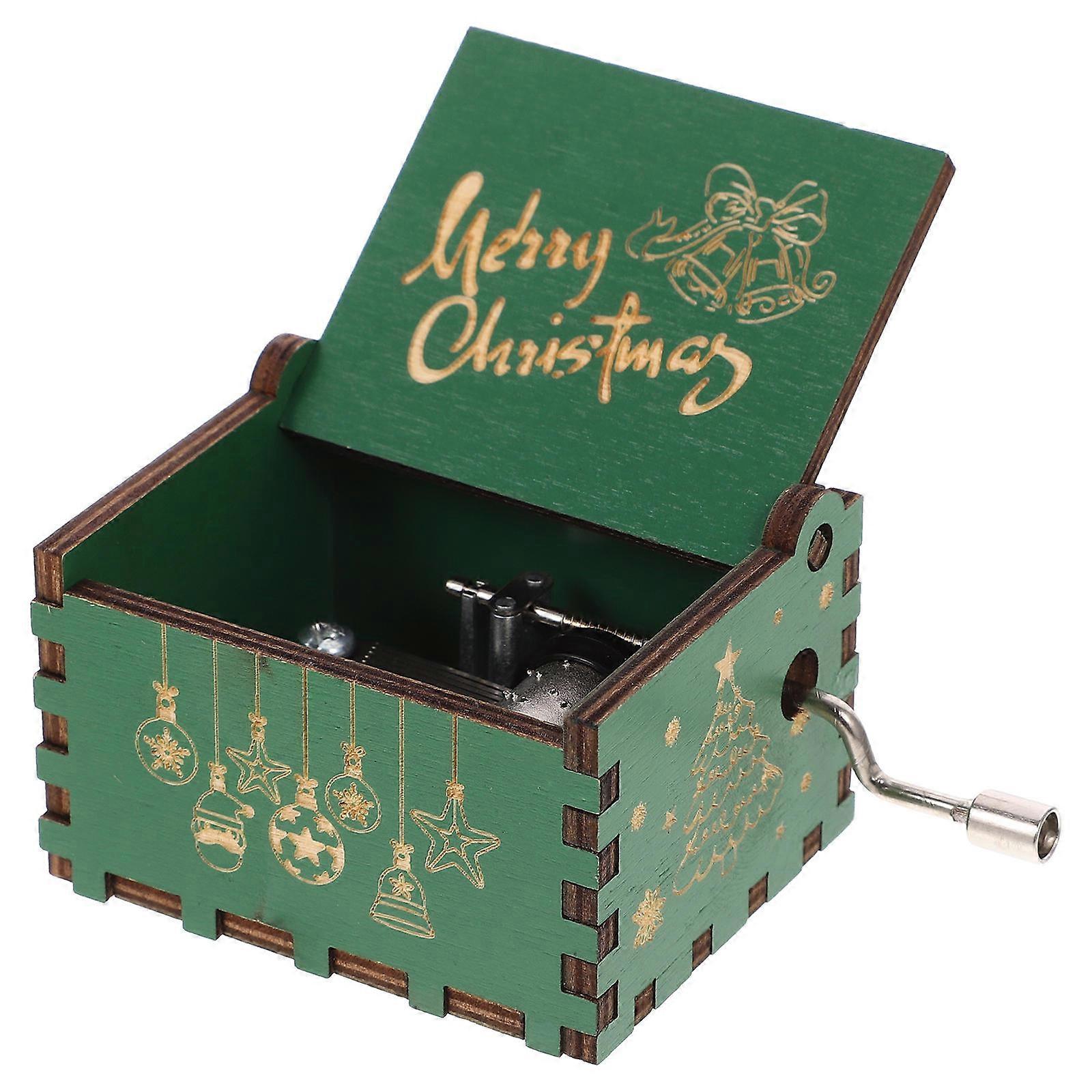 Wood Musical Box Hand Crank Music Playing Christmas Style Green 6.4x5.2x4.2cm 1Pack