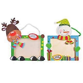 Wooden Cartoon Photo Frame Christmas Decor for DIY 2Sets