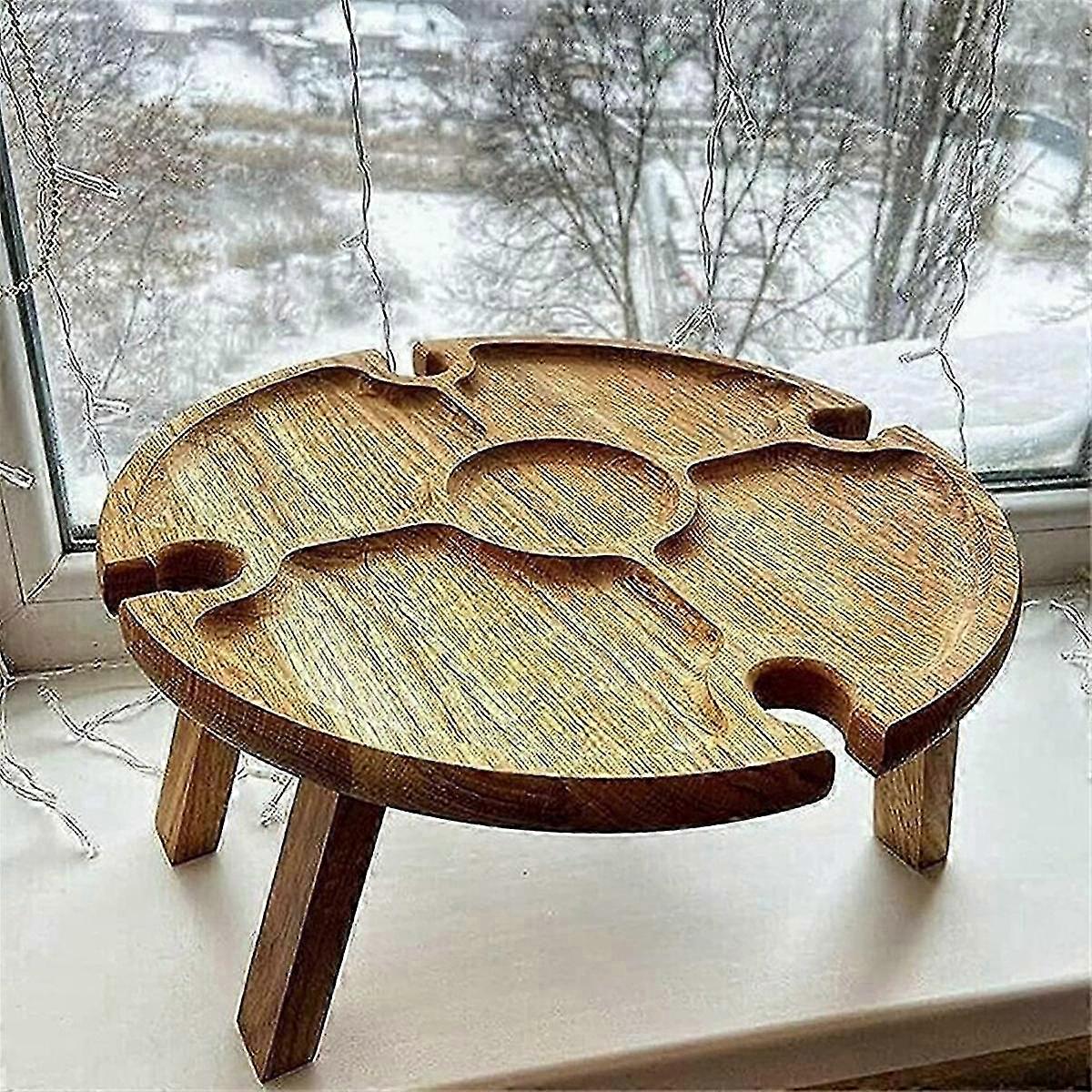 Wooden Outdoor Folding Picnic Table Portable 2 in 1 Wine Glass Rack, Foldable Desk Wine Glass Rack Table Picnic Tray