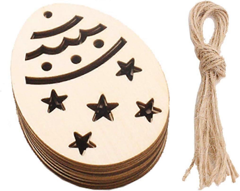 Wooden Egg Ornaments 20pcs Easter Egg Wooden Ornaments Easter Hanging Decorations Easter Egg Hanging Wooden Pendants (style 3) Easter Hanging Eggs