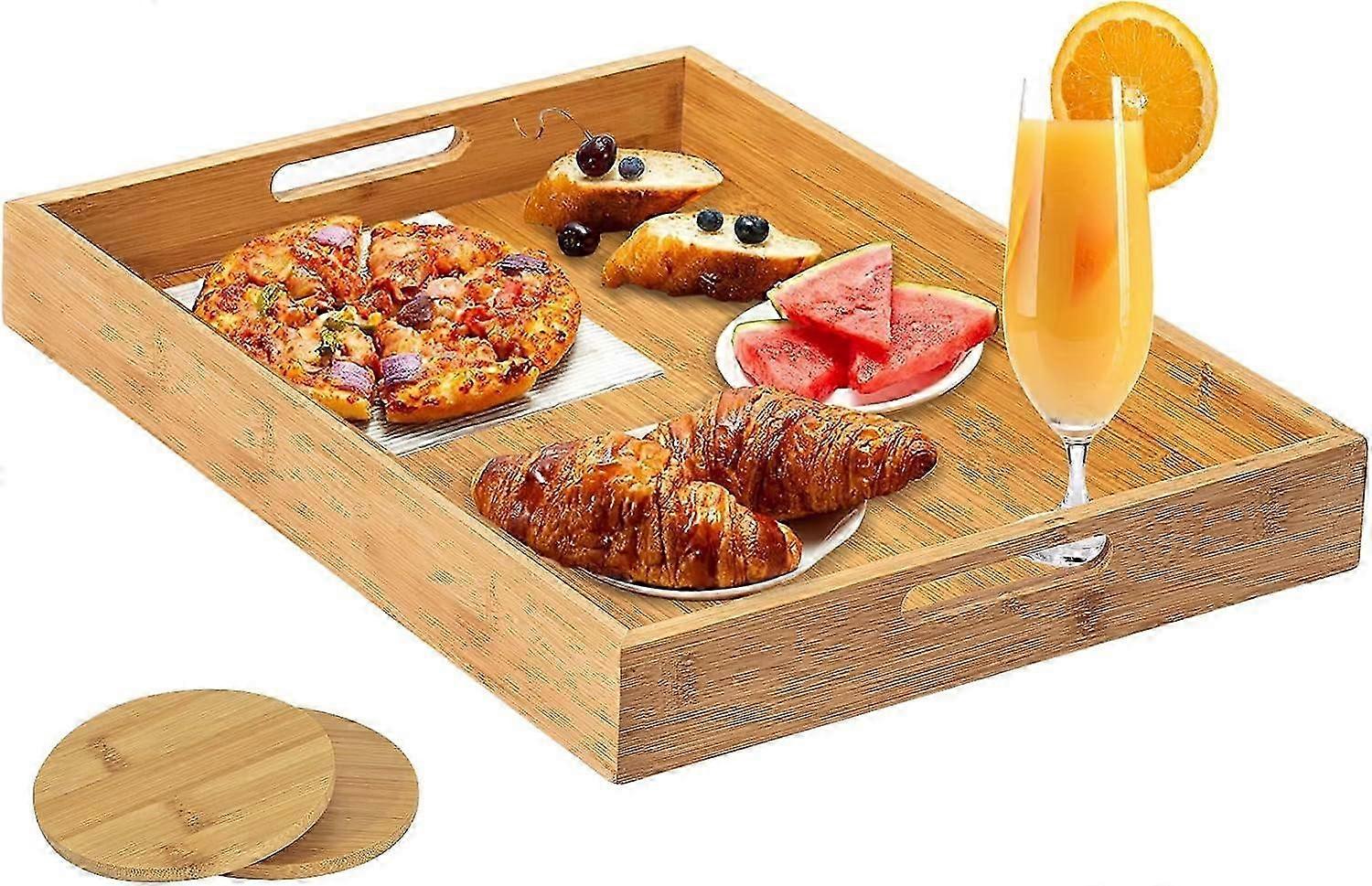 Wooden Tray Large with Handles for Food Serving, Rectangular Bamboo Serving Tray for Eating Food, Di