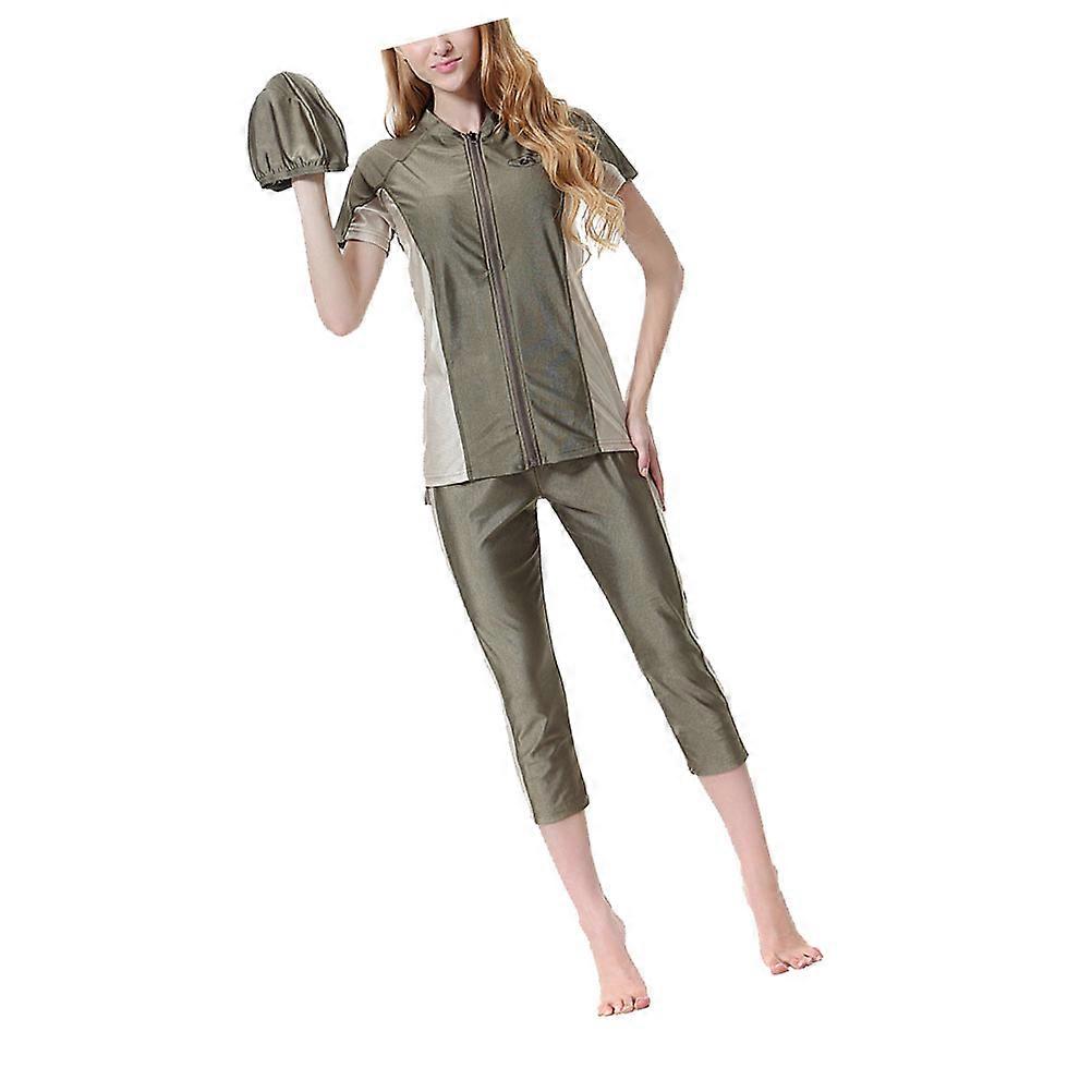 Traditional Swimming Beachwear Split Swimming Beachwear Kit For Muslim Women Ladies Army Green Modest Swim Suit 1Set