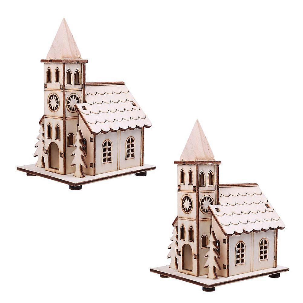 Wooden Xmas Decor Church Modeling Adornment for Xmas 14Pcs Khaki Desktop