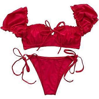 Baddräkt Dam Snabbtorkande Sexig Bikini Baddräkt - vinröd