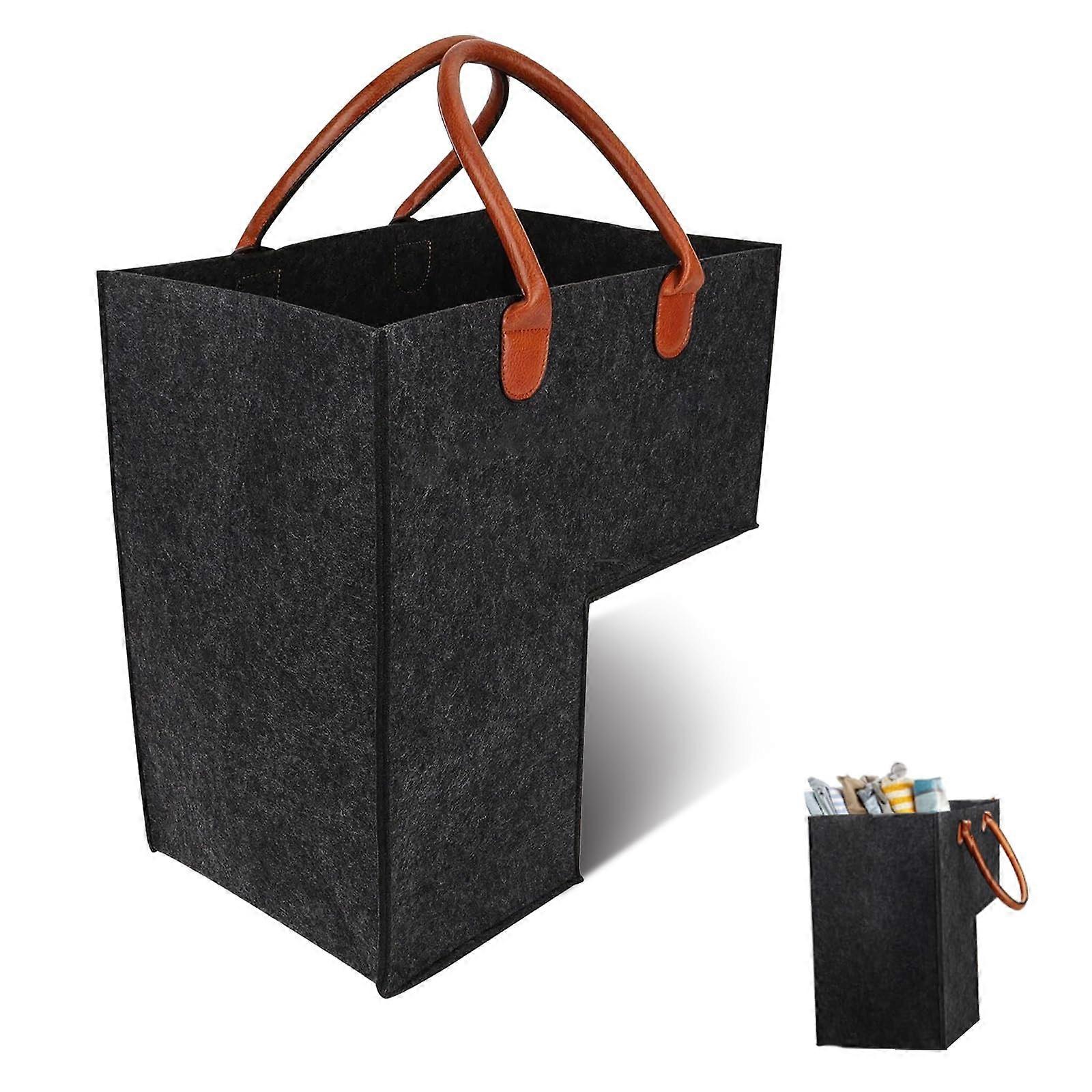 Stair Basket L Shaped, Stair Organiser Basket with Faux Leather Handles