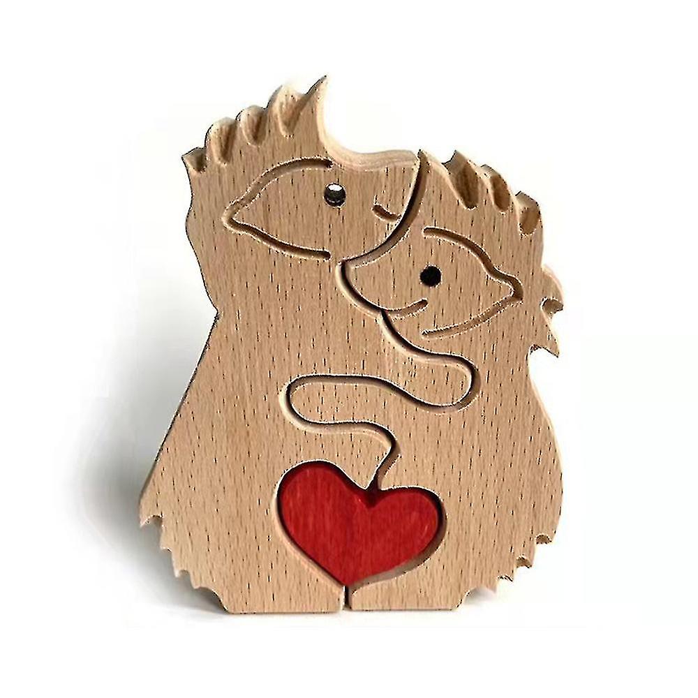 Wooden Ornaments Hand Carved In True Love Animals Statue Family Decoration A