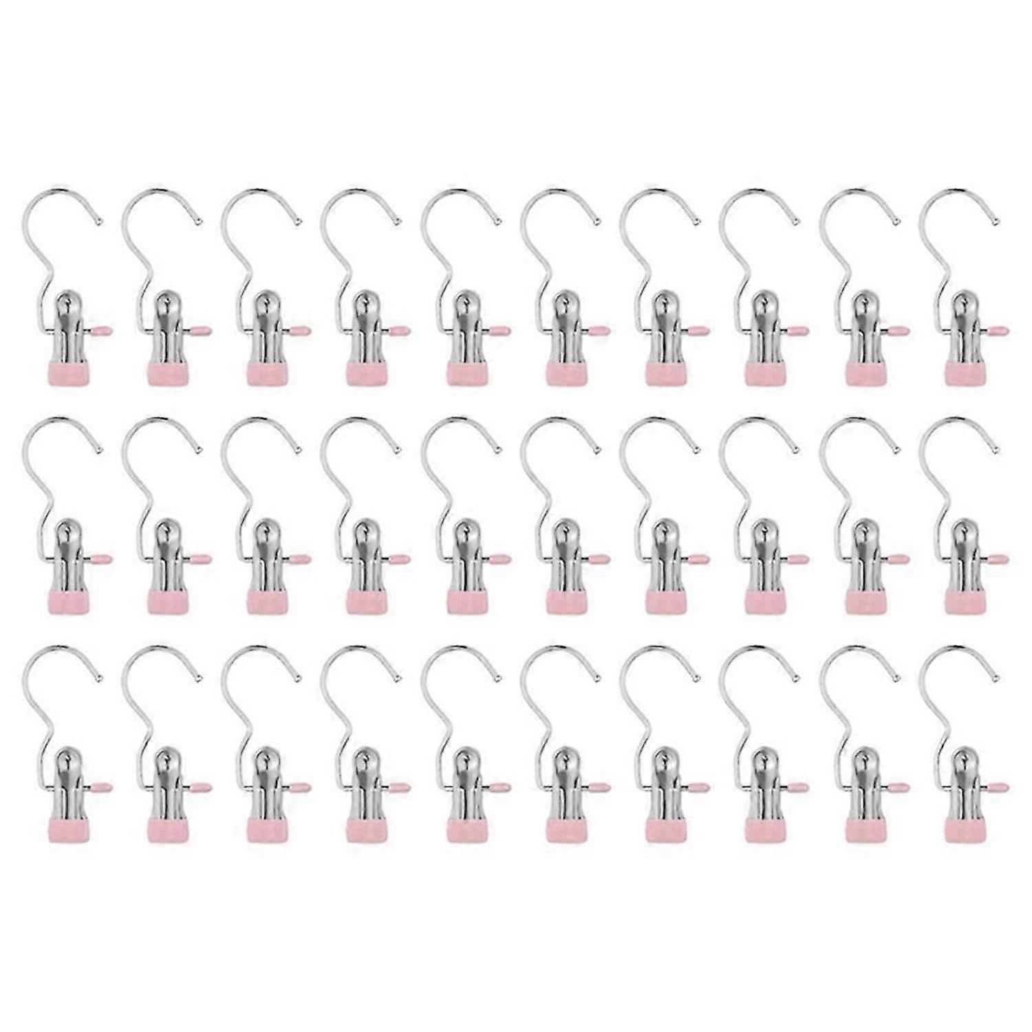 Laundry Hooks Hanging Clip Clothes,Hat Pants Towel Pink 30PC