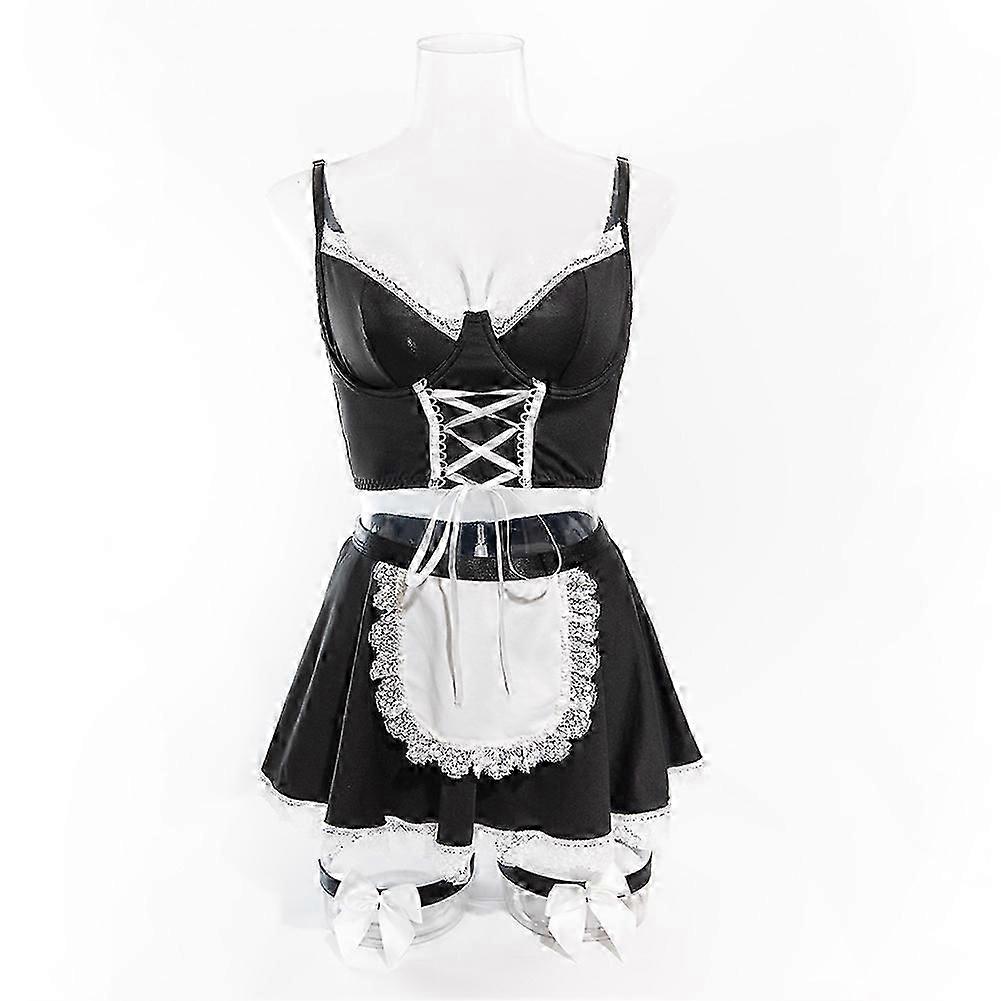 Lingerie Set for Women Ruffle French Maid Outfit Cosplay Lingerie Set 4 Pack Maid Costume