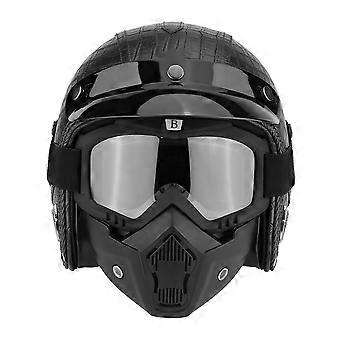 Universal Motorcycle Scooter PU Leather Open Face Half Helmet&Goggles Crocodile Black XL