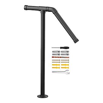 Utomhus Steg Trappräcke Stödhandtag Flexibel höjd för trätrappor Svart 1 stycke
