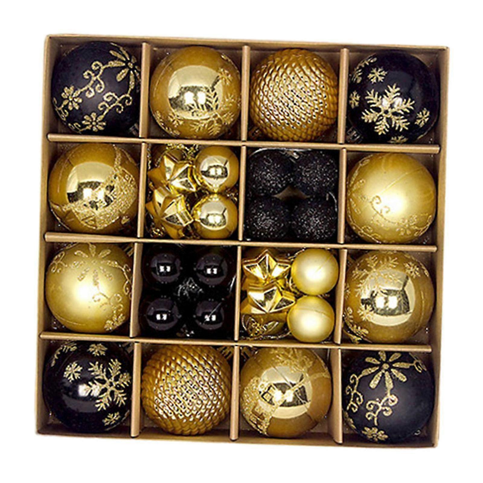 Exquisite 44 Pieces Christmas Ball Ornaments Set Diy For Anniversary Office Restaurant Black Gold
