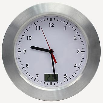 MyTime Bath klocka med temperaturdisplay och radiostyrd klocka med borstad aluminiumram, sugpropp och fäste för bordsmontering, vit/s