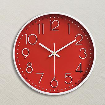 12 tums väggklocka, dekorativ batteridriven kvartsrörelse rund väggklocka för vardagsrumsdekor lätt att läsa (röd)