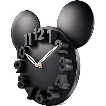 10 tums barns väggklocka svart mus 3D-nummer kvarts väggklocka för sovrum förskola