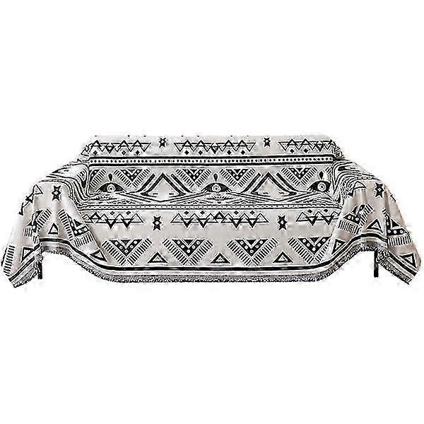 Reversible Sofa Cover Chenille Jacquard Geometric Boho Couch Cover, Beige Black