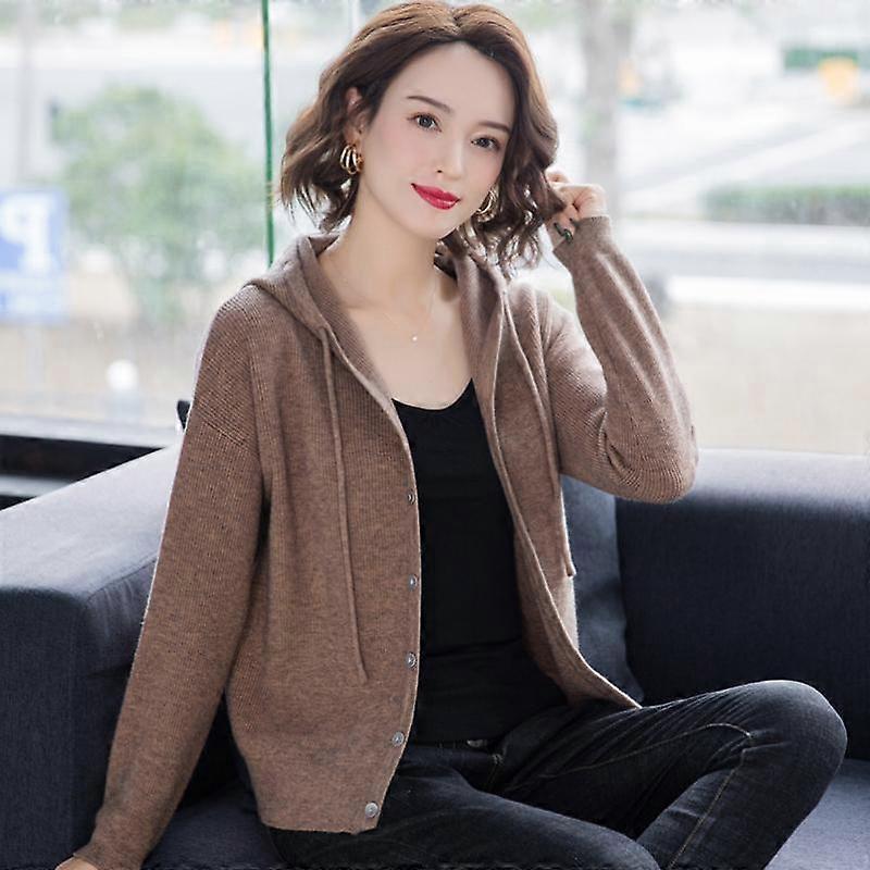 Spring Clothes Women Knitted Cardigan Korean Fashion Casual Long Sleeve Top Button Up Hooded Knitwears Sweater Coat