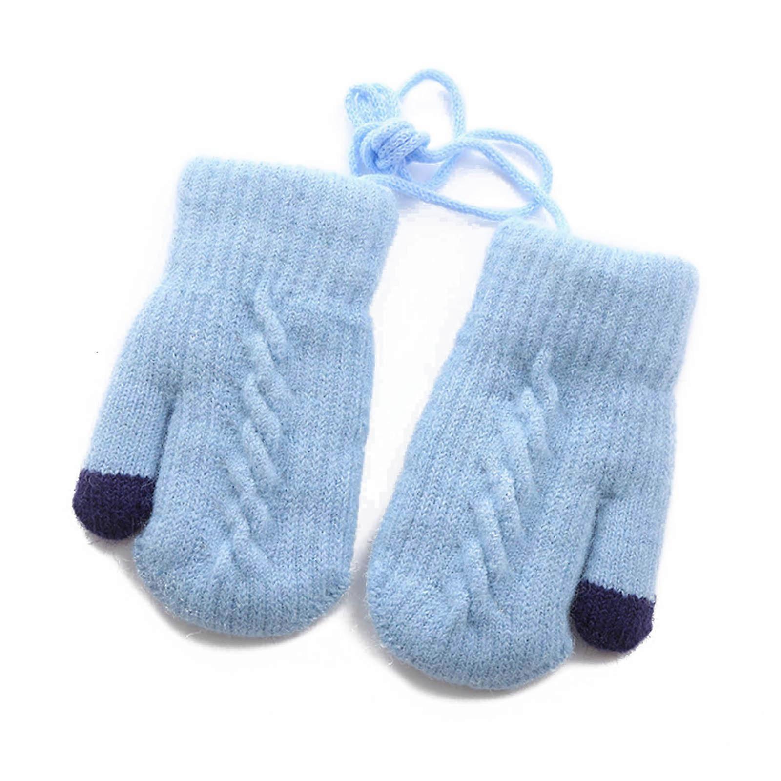 Warm Knitted Gloves Stylish Neck Hanging Kids Knit Mittens for Toddlers Winter Gloves for Boys and Girls Durable Gift light blue
