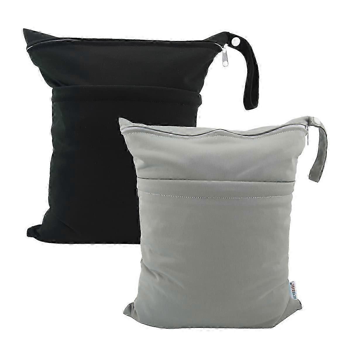 Waterproof Wet & Dry Bag - Dual Zipper Pockets for Diapers, Swimwear & Gym Clothes | Reusable Travel Organizer (2 Pack)