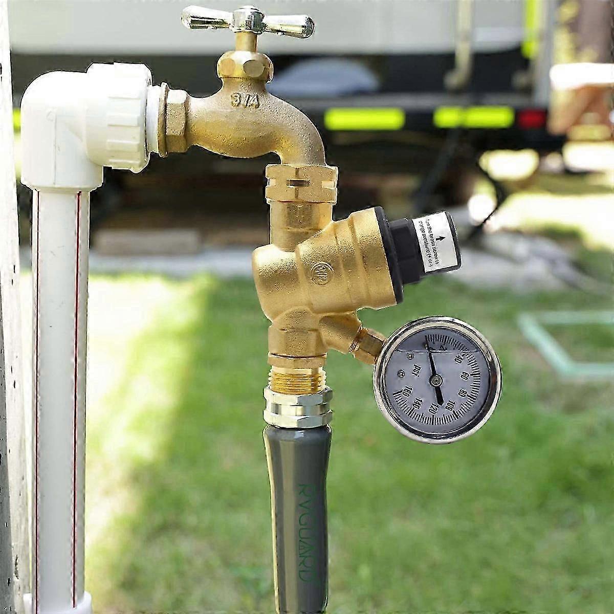 RV Water Pressure Regulator Valve, Brass Lead-Free Adjustable Water Pressure Reducer for RV Campers-M