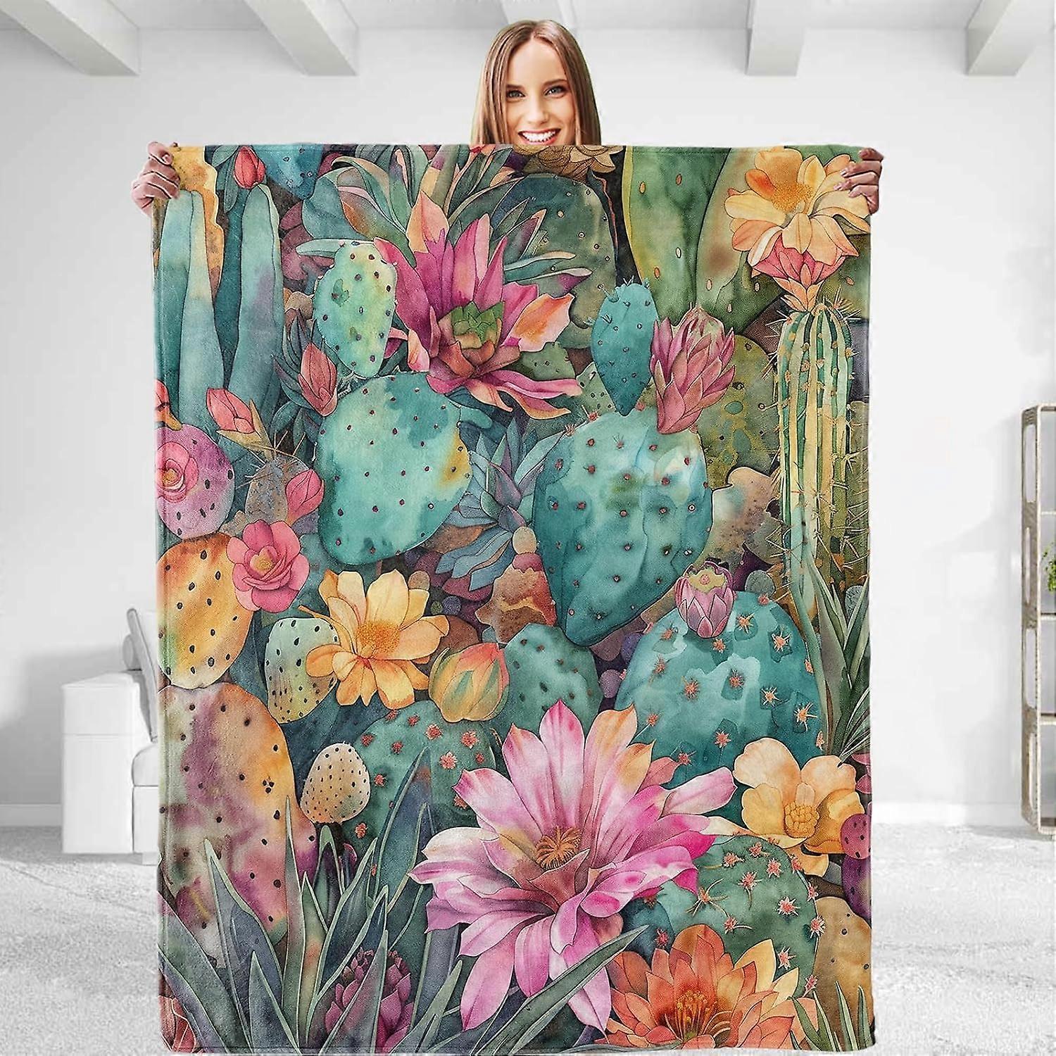 Vibrant Cactus Throw Blanket - Soft Plush Flannel Blanket, Lightweight, Comfy, Fuzzy, Warm, Anti-Pilling for Sofa, Bedroom, Bed, Living Room, Outdoor
