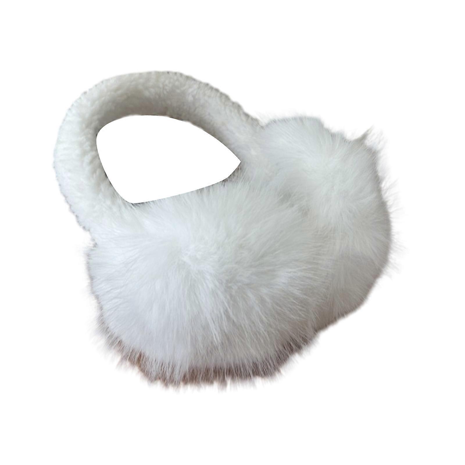 Foldable Plush Ear Muffs for Women Warm Ear Warmers Cold Weather Ear Protective Furry Ear Covers for Outdoor Activities White