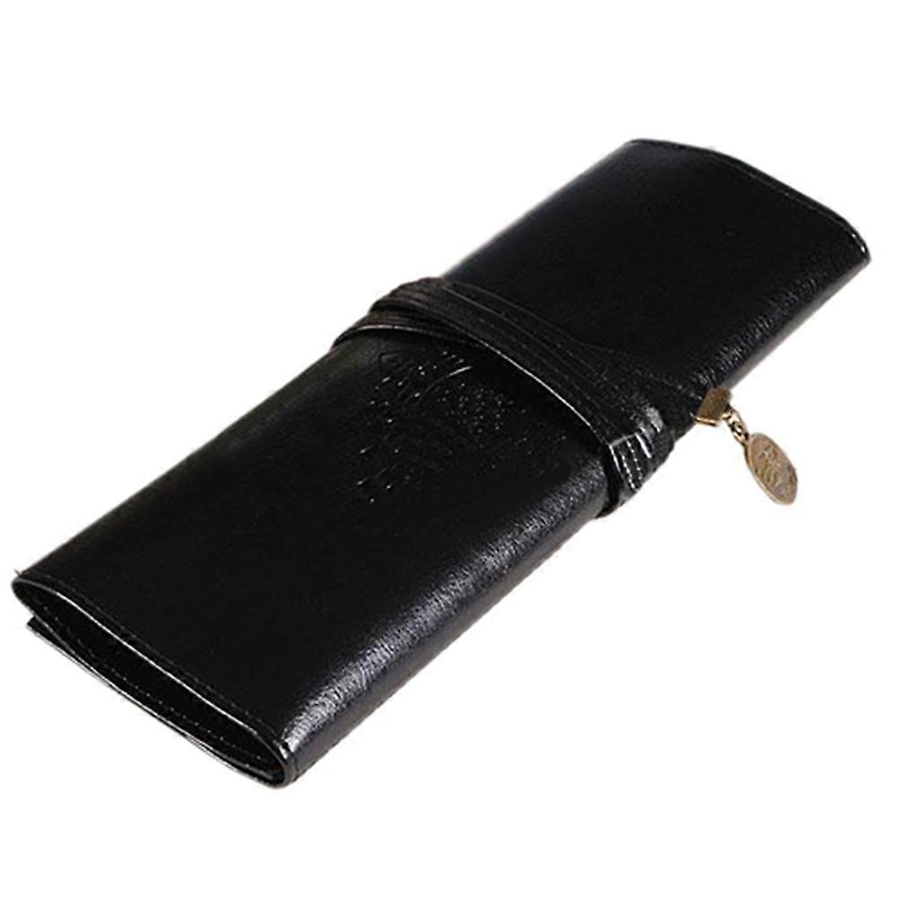 Vintage Roll Faux Leather Make Up Cosmetic Pen Pencil Case Pouch Purse Bag