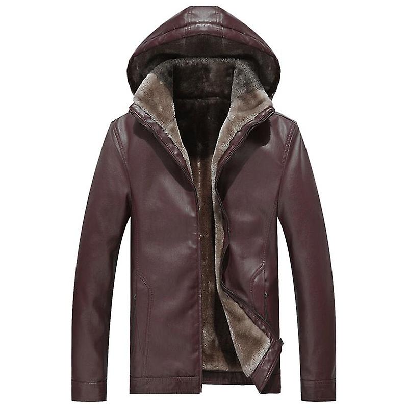 Winter Leather Jacket Men Thicken Fleece Warm Hooded Fur Coat Male Out